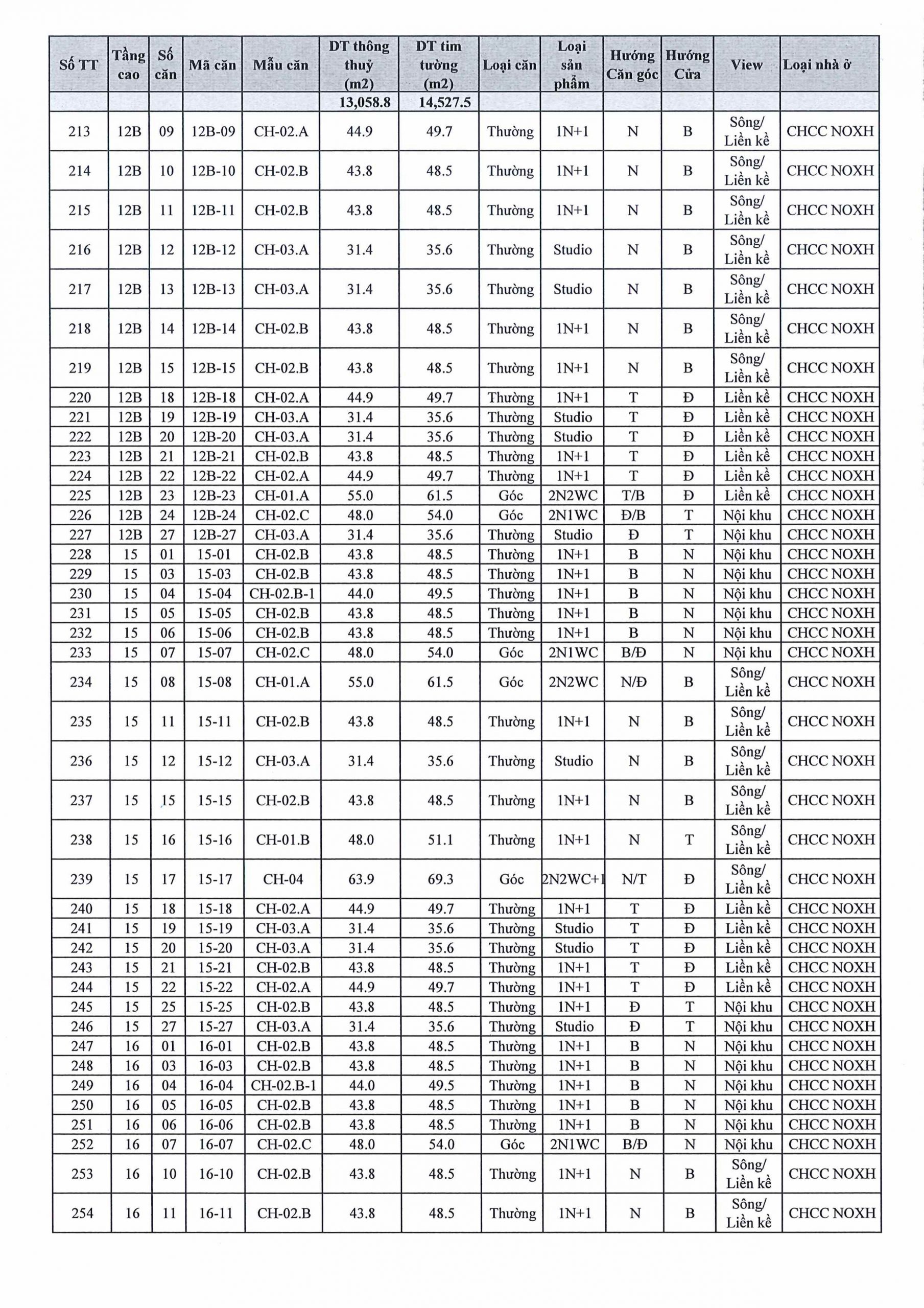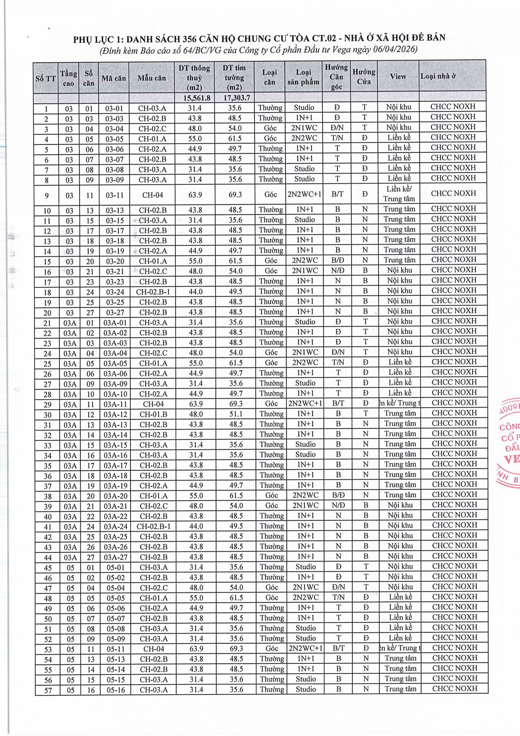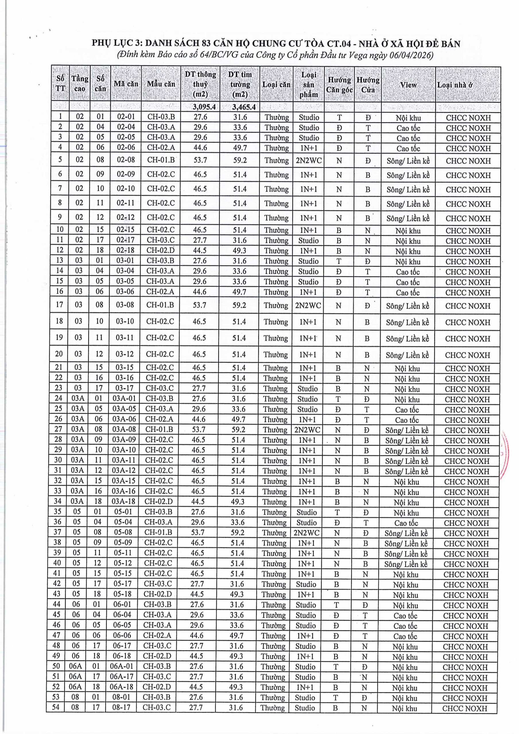DANH SÁCH KHÁCH HÀNG ĐÃ KÝ HỢP ĐỒNG MUA, THUÊ CĂN HỘ TẠI DỰ ÁN VEGA HOMES