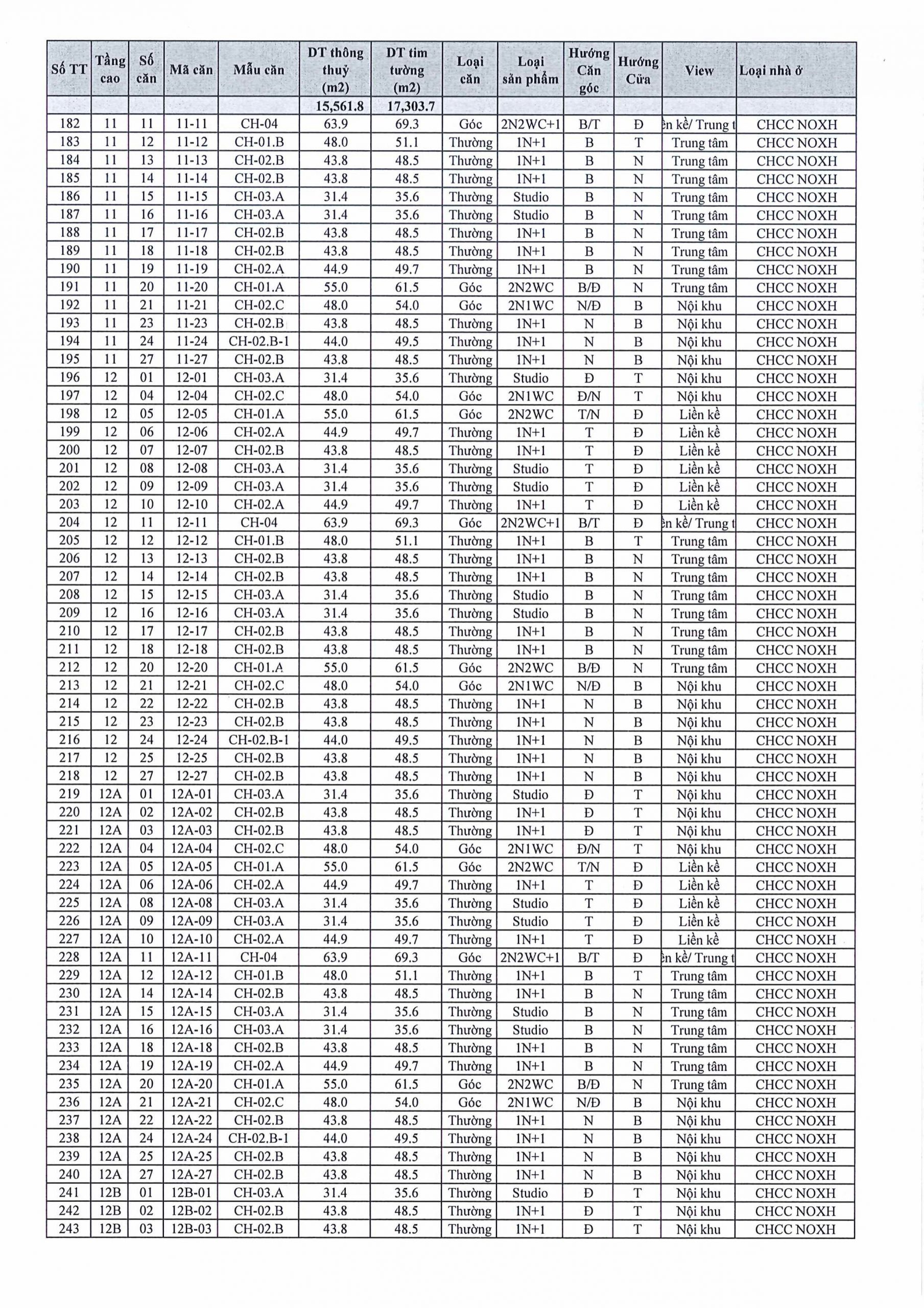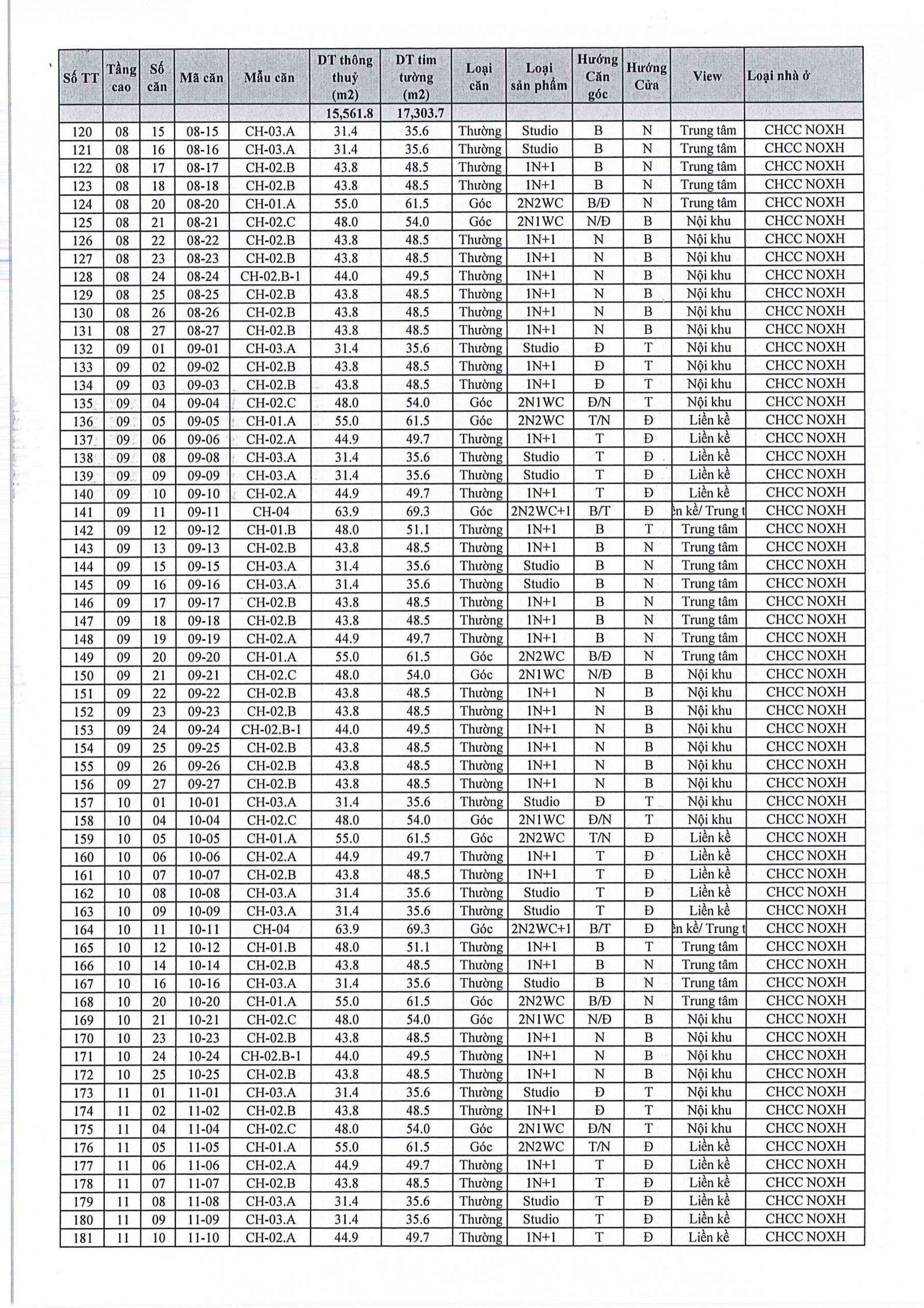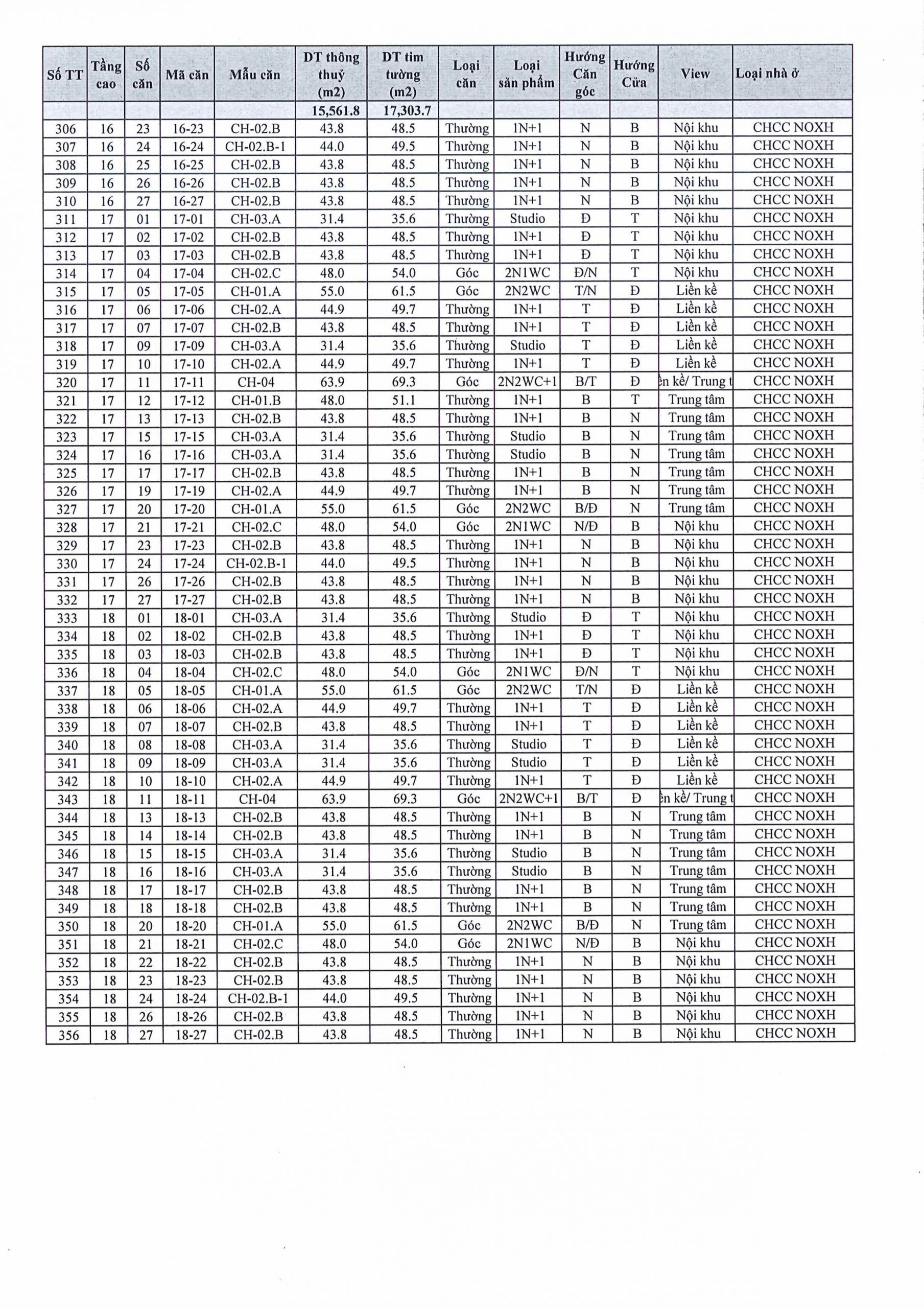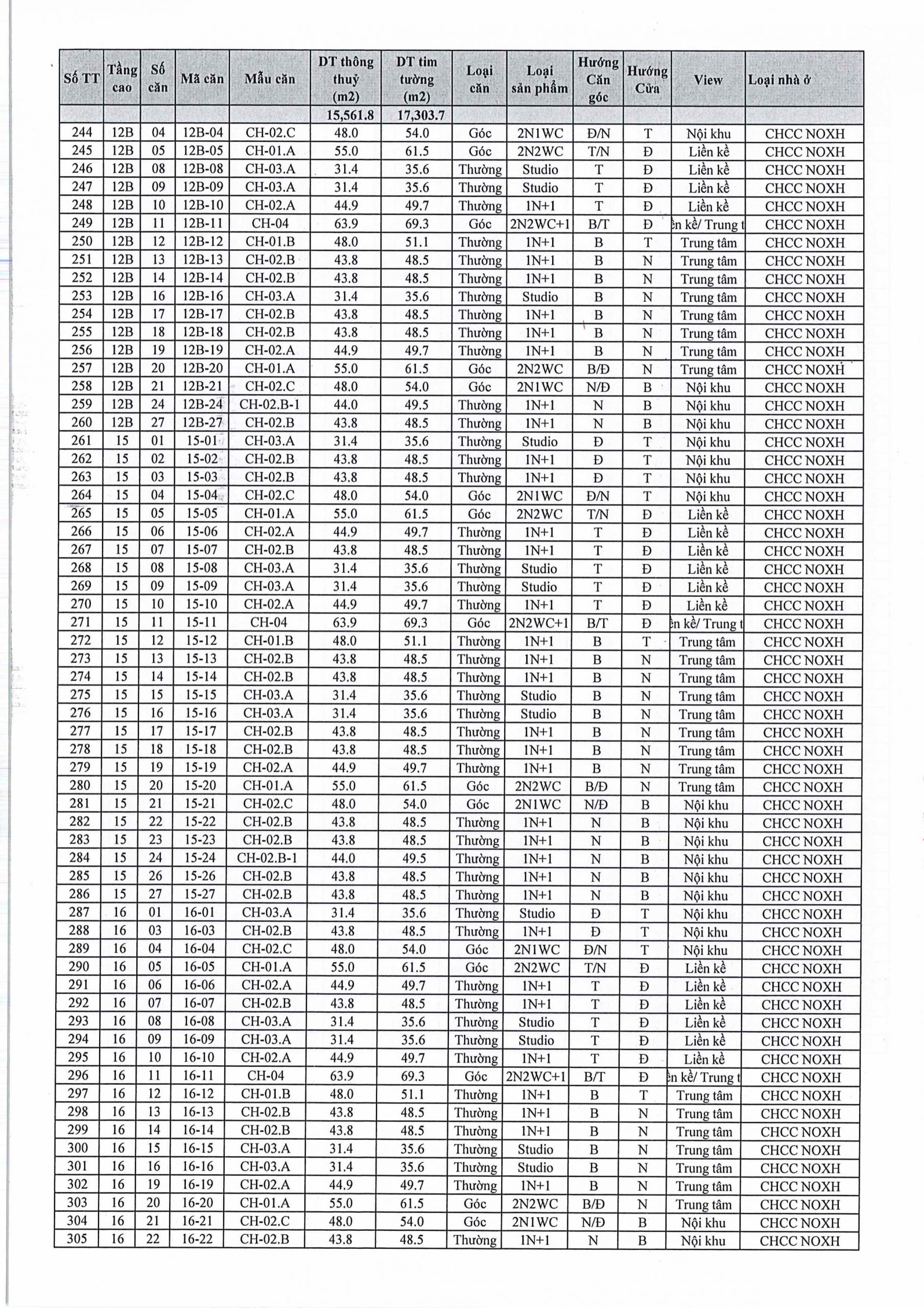 DANH SÁCH KHÁCH HÀNG ĐÃ KÝ HỢP ĐỒNG MUA, THUÊ CĂN HỘ TẠI DỰ ÁN VEGA HOMES