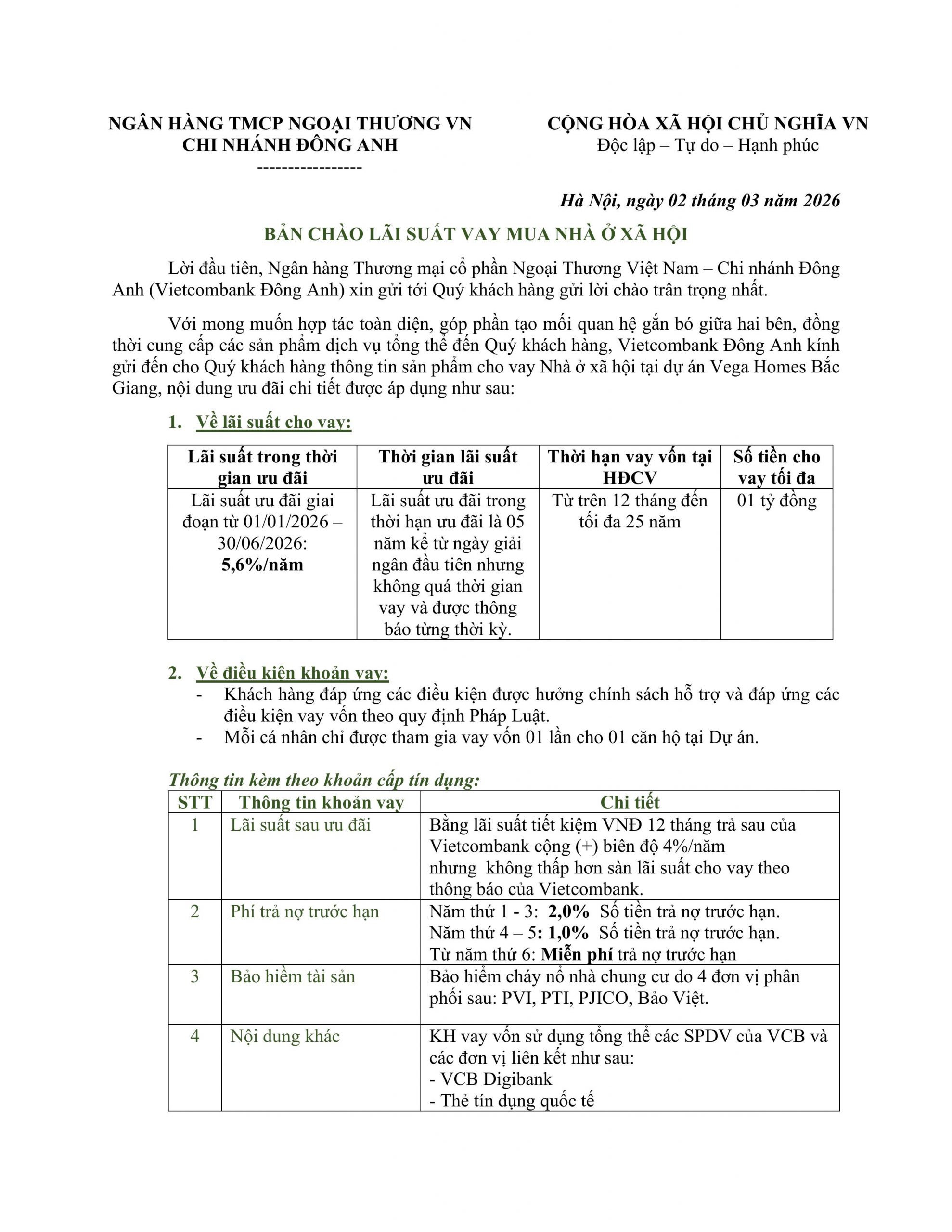 VIETCOMBANK: BẢN CHÀO LÃI SUẤT VAY MUA NHÀ Ở XÃ HỘI TẠI DỰ ÁN VEGA HOMES BẮC GIANG